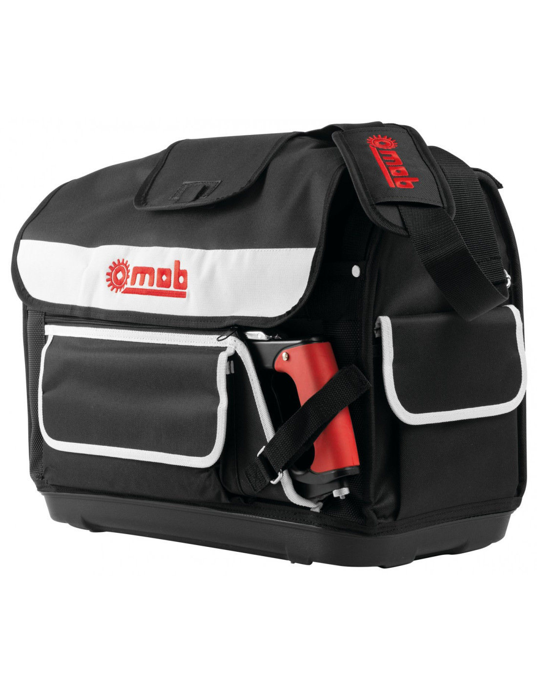 - Munie d'une poignée en mousse confortable (barre métal surmoulée) et d'une bandoulière réglable avec fourreau antidérapant