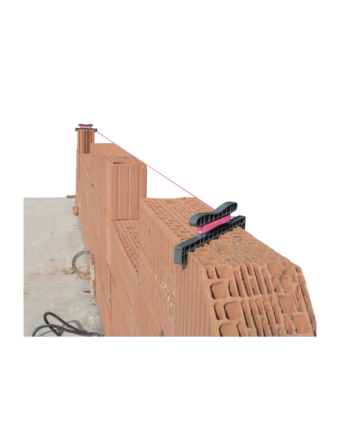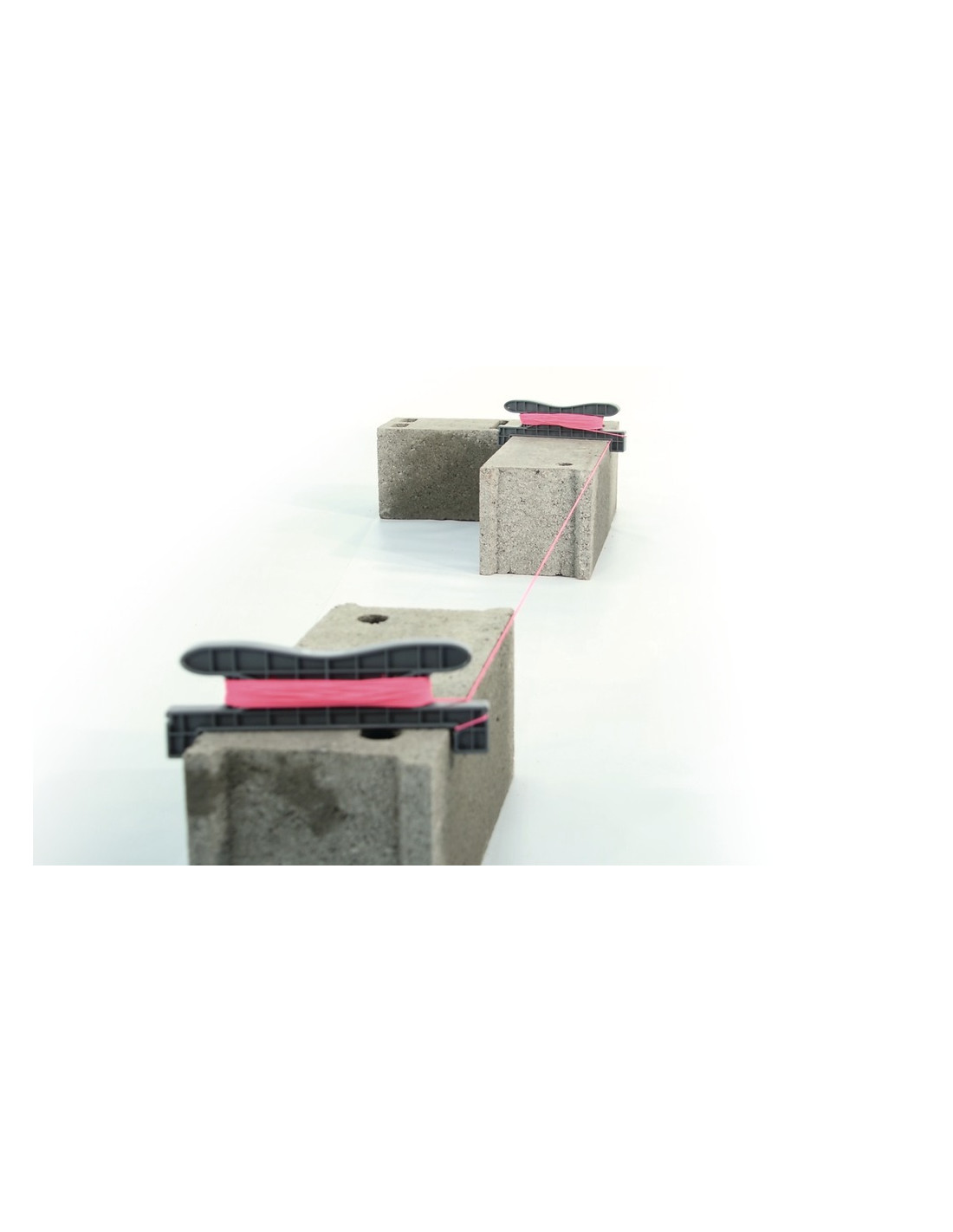 - Permet la mise en place simple et rapide d'un cordeau entre des blocs à aligner (parpaings ou briques)